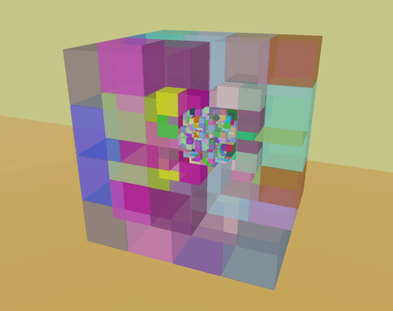 Asides from the 9000% performance increase, what's cool about this data-oriented octree algorithm that I ended up with is that it could be super easily uploaded to the GPU and used in a shader. The entire system consists of only blittable types, which are all stored in flat, contiguous buffers instead of in huge nested hierarchies. I had already begun converting octree-nodes into 4x4 matrices to send to the GPU before I discovered that this approach could never be performant enough.